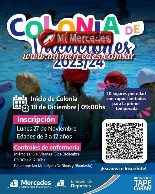 La Dirección de Deportes a cargo del Prof. Nicolás Célser, informa lo que será la inscripción, las edades y los requisitos para la Colonia de Vacaciones 2023/24